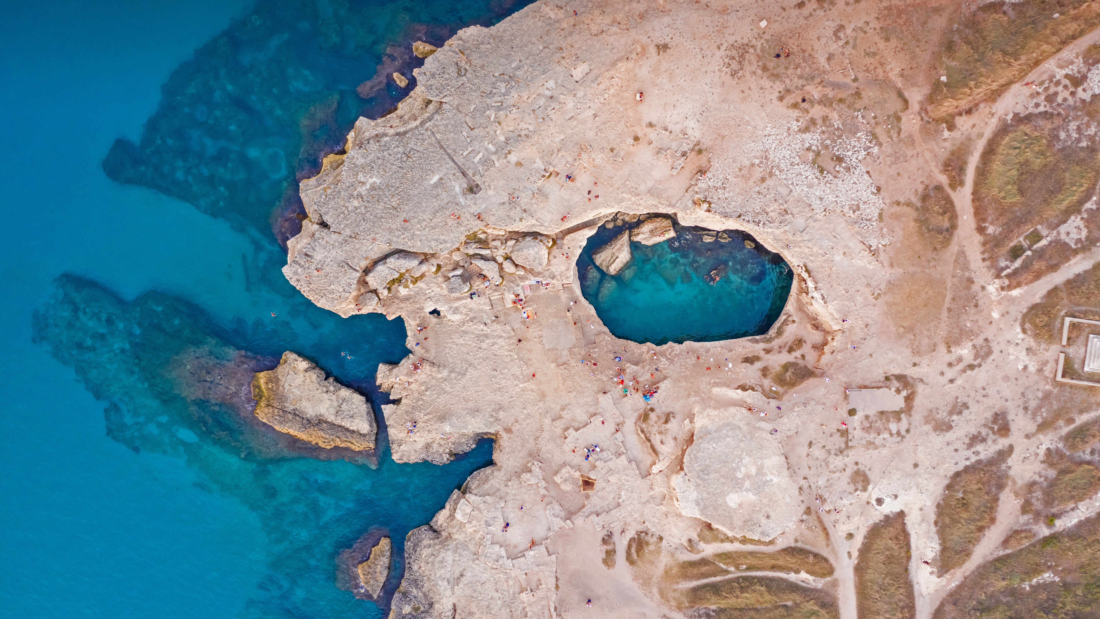 Aerial view of the Grotta della Poesia (Poetry's Cave) near Roca, Lecce, 意大利 (© Amazing Aerial Agency/Offset by Shutterstock)